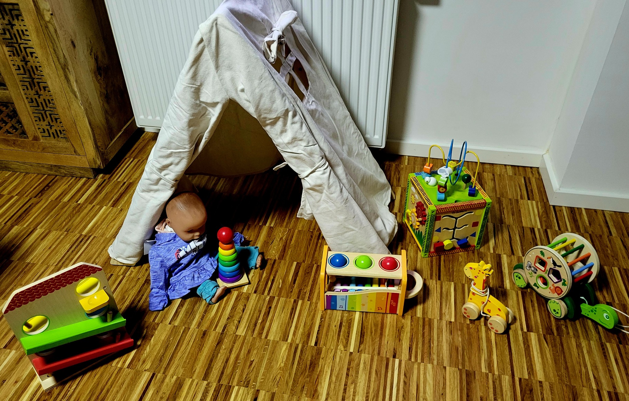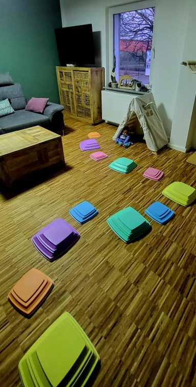 Im Haus haben wir ein offenes Wohnkonzept. In unserem Wohn- und Esszimmer darf gesungen, getanzt, gespielt, getobt, geforscht, entdeckt, gebastelt, gebaut, gekuschelt und gelesen werden. Hier gibt es natürlich eine Auswahl an altersgerechtem Spielzeug. Auch hier möchte ich der Kreativität immer wieder freien Lauf lassen. Mit Decken und Kissen können tolle Höhlen gebaut und neue Spielansätze geschaffen werden. Den Jahreszeiten entsprechend möchte ich mit ihren Kindern Eier färben, Plätzchen ausstechen und backen sowie kleine Kürbisse bemalen. Eine besondere religiöse Erziehung sehe ich allerdings nicht vor. Auf Brauchtumsfeste wie Weihnachten, Ostern und Geburtstage werden wir uns mit verschiedenen Liedern, Geschichten sowie Mal- und Bastelangeboten gemeinsam einstimmen. Tolle kleine Projekte werden uns unabhängig davon durch das ganze Jahr begleiten.